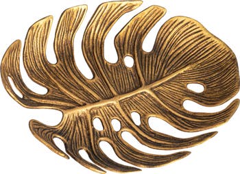 - A luxurious pewter Monstera leaf, its intricate veins and textures highlighted by an antique gold finish, exudes sophistication