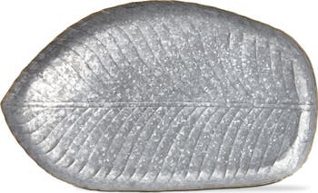 bring the beauty of nature indoors with this galvanized leaf tray. handcrafted by skilled artisans, this stunning piece is the perfect accent for your home decor from the coffee table to the entryway. with its unique leaf design and brass rim, it's as stylish as it is functional. elevate your living space with a touch of nature.