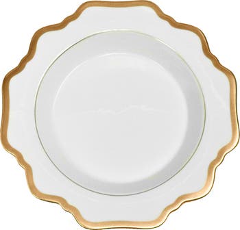 Add a touch of elegance to your dining experience with Anna's Palette, antique shaped dinnerware. Crafted from porcelain in stunning shapes, this dinnerware features a delicate scalloped gold edge for a sophisticated touch. Mix and match with other antique shaped dinnerware from Anna's Palette to create a unique and stylish table setting.