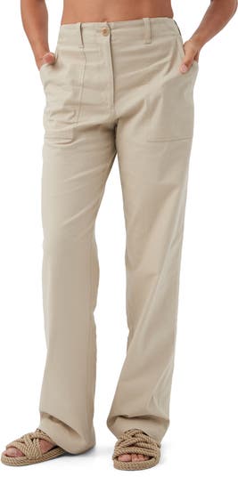 Straight leg stretch linen pants with side utility pockets