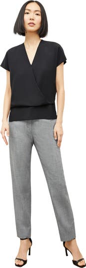This polished V-neck top combines T-shirt-level comfort with a machine-washable, ever-so-slightly-textured Japanese fabric that doesn’t wrinkle. A draped front panel offers a relaxed fit through the midsection, while a fitted seam at the waist creates definition. This piece has been treated with Polygiene®, an anti-odor finish. The fabric won’t hold smells, so you can wear your piece multiple times before tossing it in the washing machine.
