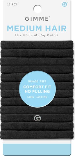 Experience the perfect balance of comfort and function with Gimme Beauty Medium Hold Hair Bands. These innovative hair ties are thoughtfully designed to work with your unique hair texture, whether straight, wavy or anything in between. Our patent-pending seamless nylon and spandex bands distribute tension evenly, helping to eliminate the discomfort and damage often associated with traditional hair ties.Created with premium materials, these versatile hair bands maintain their elasticity through daily use while providing a secure hold that won't leave creases in your hair. The soft, gentle construction helps prevent snags and breakage, making them ideal for everything from casual everyday styles to active workouts. Each band features our signature reflective G logo, adding a subtle touch of style to your hair accessories.These comfortable hair ties adapt to your needs and are perfect for short to medium hair lengths as well as wavy or straight hair. The pack of bands ensures you always have a fresh hair tie when you need one, whether at home, at work, or at the gym. The damage-free design means you can confidently wear your hair up all day without worry.At Gimme Beauty, we believe hair solutions aren't one size fits all. We understand that each person's hair journey is unique, which is why we've designed these hair ties to work for all hair types, helping you feel confident and unstoppable in your daily life.We celebrate the sisterhood that grows from our shared experiences with hair. While some brands focus on exclusivity, we believe in creating accessible, inclusive products that work for everyone. Our mission goes beyond hair accessorieswe're here to amplify your confidence because we know that confident women are unstoppable.
