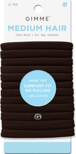 Experience the perfect balance of comfort and function with Gimme Beauty Medium Hold Hair Bands. These innovative hair ties are thoughtfully designed to work with your unique hair texture, whether straight, wavy or anything in between. Our patent-pending seamless nylon and spandex bands distribute tension evenly, helping to eliminate the discomfort and damage often associated with traditional hair ties.Created with premium materials, these versatile hair bands maintain their elasticity through daily use while providing a secure hold that won't leave creases in your hair. The soft, gentle construction helps prevent snags and breakage, making them ideal for everything from casual everyday styles to active workouts. Each band features our signature reflective G logo, adding a subtle touch of style to your hair accessories.These comfortable hair ties adapt to your needs and are perfect for short to medium hair lengths as well as wavy or straight hair. The pack of bands ensures you always have a fresh hair tie when you need one, whether at home, at work, or at the gym. The damage-free design means you can confidently wear your hair up all day without worry.At Gimme Beauty, we believe hair solutions aren't one size fits all. We understand that each person's hair journey is unique, which is why we've designed these hair ties to work for all hair types, helping you feel confident and unstoppable in your daily life.We celebrate the sisterhood that grows from our shared experiences with hair. While some brands focus on exclusivity, we believe in creating accessible, inclusive products that work for everyone. Our mission goes beyond hair accessorieswe're here to amplify your confidence because we know that confident women are unstoppable.