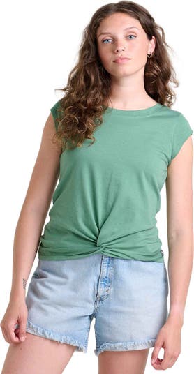Free the needless fabric knots and tucked in tops! Best paired with high-waist bottoms and a beverage, this shirt adds a twist front detail that is an effortless way to add a little somethin’ to your outfit.