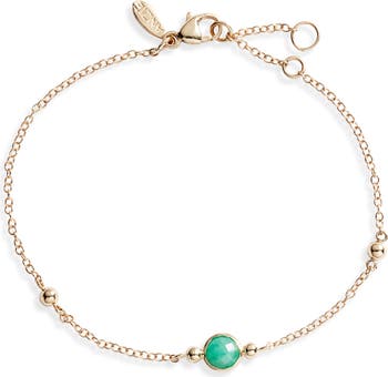 A bezel-set faceted emerald gleams at the center of this pretty, everyday bracelet handcrafted in 14-karat gold.