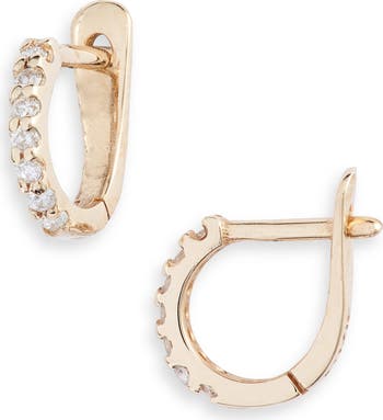 Sparkling brilliant-cut diamonds nested in a gleaming setting light this pair of handcrafted huggie-hoop earrings.