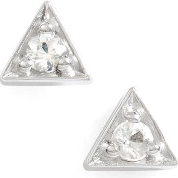 A sparkling brilliant-cut diamond nested in a gleaming triangle alights this pair of handcrafted stud earrings.