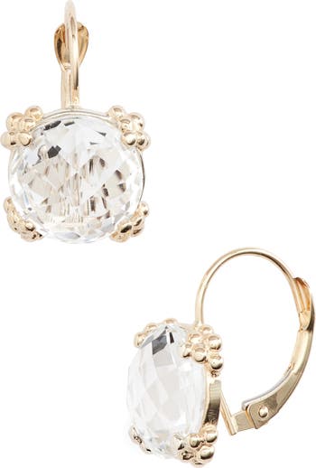 Beaded clusters corner glittering white topaz stones on these modern drop earrings handmade and hand-polished in Canada.