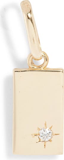 This sleek dog tag pendant charm highlighted by a single stone instantly elevates your favorite chains.