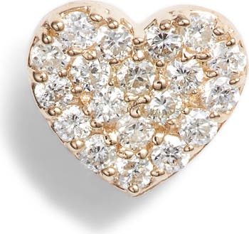 A dainty heart covered in sparkling diamonds makes this handmade 14-karat gold earring worthy of true love.