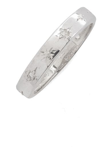 A gleaming hand-polished band ring is engraved with starbursts and set with sparkling stones for a bit of subtle glint.