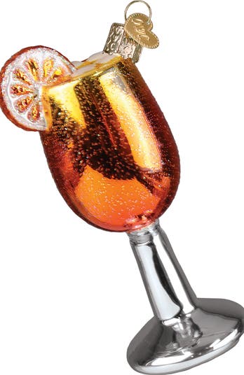Toast the holiday in refreshing style with this bubbly mouth-blown-glass ornament spiked with a frosty dusting of glitter.