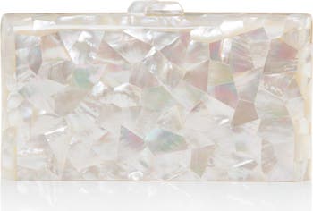 Created with the finest mother of pearl and lined in opulent black velvet. This contemporary sculptured wedding handbag is a statement piece for special occasions.