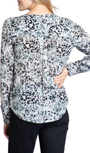 Cascading layered ruffles add to the dreamy quality of this chiffon top rendered in a vivid watercolor print.