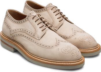 Crisp, classic broguing traces the contours and makes a traditional flourish on the wingtip toe of a derby crafted from soft suede and grounded by a flexible rubber sole.