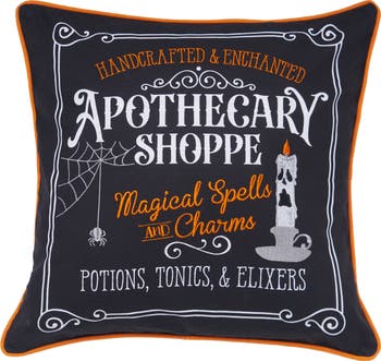 "Apothecary Shoppe" Cotton Blend Halloween Accent Throw Pillow 18" x 18"