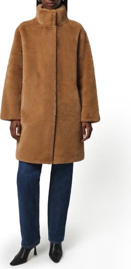 This clean and minimalist coat cut in a fingertip length is fashioned from the brand's signature Pluche faux fur for luxurious, everyday glamour.