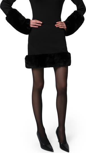 The fur is faux, but the attitude will be real when you step out in this scintillating stretch-crepe miniskirt finished with a plush hem of faux fur.