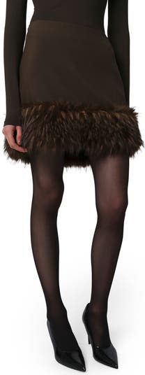 The fur is faux, but the attitude will be real when you step out in this scintillating stretch-crepe miniskirt finished with a plush hem of faux fur.