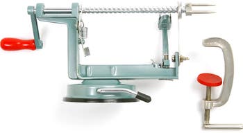 The Norpro Apple Mate 2 Slicer & Corer peels, cores, and slices apples, potatoes, pears, and more with speed and precision. Made from durable cast metal with adjustable settings, it can peel only, slice only, or do both at once. The strong suction base and clamp ensure stability for safe, hands-free use — perfect for pies, canning, and meal prep.