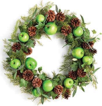 - With a refreshing pop of apple green, this spring wreath features faux green apples, olive leaves, ivy olive foliage and rosemary sprigs, and comes with a twine loop for hanging. A seamless transition from late winter to early spring.