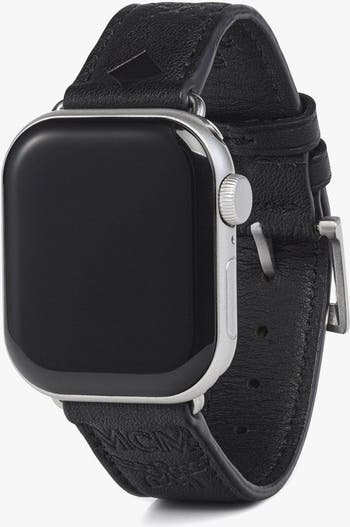 Natural full-grain leather watch band with embossed Visetos monogram motif