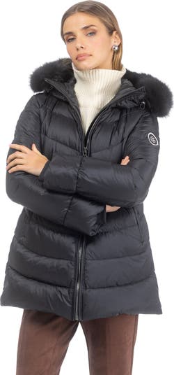 Designed for après-ski comfort, this jacket features a detachable Genuine Shearling hood trim, blending functional warmth with sophisticated alpine style.