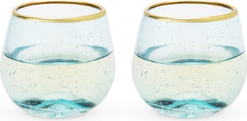 Aqua Bubble Stemless Wine Glasses Set of 2
