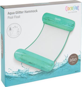 Relax in style while taking in some sun rays on this glittery, hammock-style pool float durably made from heavy-duty vinyl for a playful addition to your summery adventures.