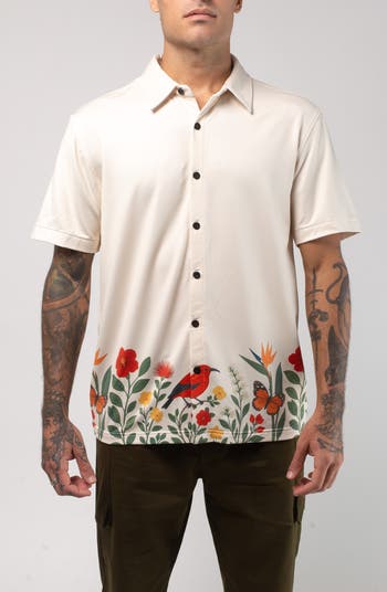 Sweat-wicking, quick-drying fabric made of recycled fibers keeps you moving comfortably in a cling-free shirt that blocks UV rays to extend your fun in the sun. A pointed collar and embedded odor-fighting technology help you stay fresh and smart no matter how your days heat up.