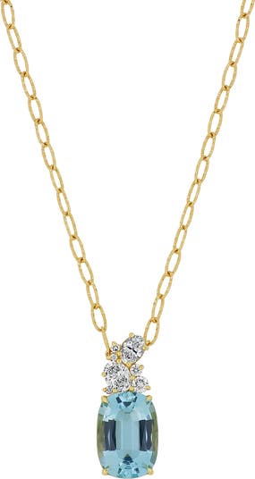 Bony Levy Aquamarine & Diamond Cluster Pendant Necklace