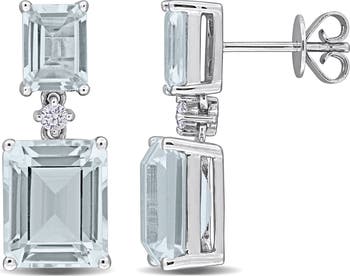 Radiant octagon-cut aquamarine accented with sparkling diamonds creates stunning drop earrings in 14k white gold. Their elegant design exudes sophistication, perfect for enhancing everyday style or celebrating special occasions. A timeless pair that radiates charm and refined beauty effortlessly.