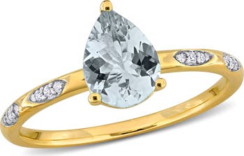 Make a statement with this elegant 14k yellow gold ring featuring a pear-cut aquamarine gemstone accented with sparkling diamonds, adding a touch of glamour and sophistication to any ensemble. Expertly crafted with attention to detail, this exquisite ring showcases the captivating beauty of aquamarine, complemented by the brilliance of diamonds, creating a timeless piece that will never go out of style. Whether worn as a symbol of love or as a fashion-forward accessory, this stunning ring is sure to make you stand out from the crowd and leave a lasting impression.