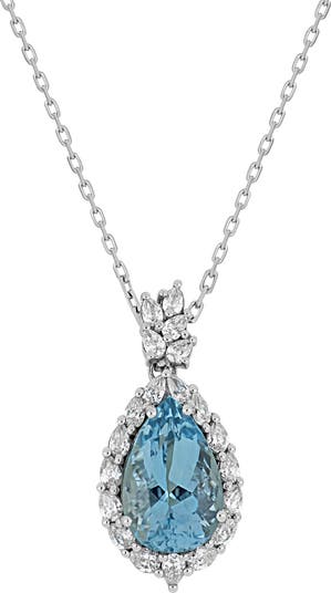 Aquamarine & Diamond Teardrop Pendant Necklace
