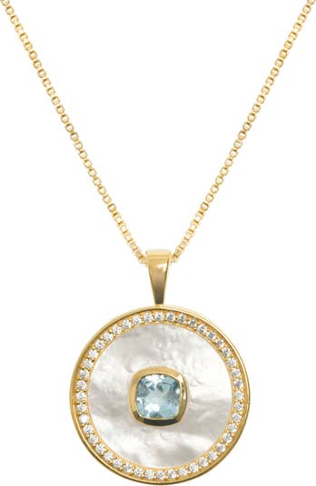 Soft blue aquamarine sits at the centre of our beautiful Aquamarine Mother of Pearl Birthstone Necklace, bezel-set into Mother of Pearl and encircled by White Zircon. Crafted in 18ct Gold vermeil over Sterling Silver, this March birthstone symbolises clarity and balance. A considered gift that combines gentle colour and sentiment in a piece designed to be worn and treasured.