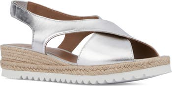 Braided jute trims the subtle wedge of this breezy crisscross sandal crafted from supple leather with a stretchy slingback strap for walkable comfort.