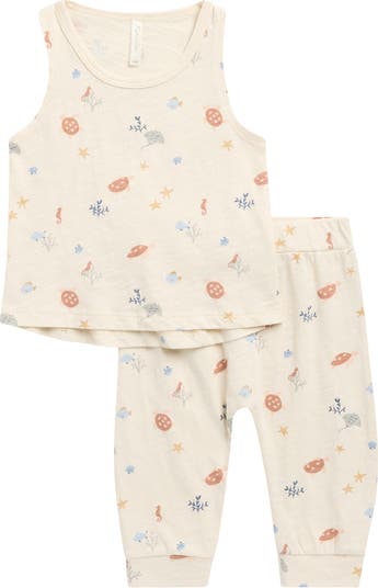 A fun aquatic print with muted colors decorates this two-piece set featuring a slouchy tank and elastic-waist pants cut from soft, breathable cotton.