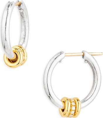 Designed in an everyday size, these timeless sterling silver hoops are full of texture and shine thanks to a trio of 18-karat-gold annulets lit by sparkling pavé diamonds.