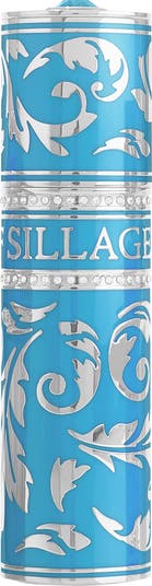 What it is: A dazzling aquamarine and silver travel spray case adorned with Swarovski crystals and refillable with any 0.27 ounce/8mL House of Sillage fragrance.