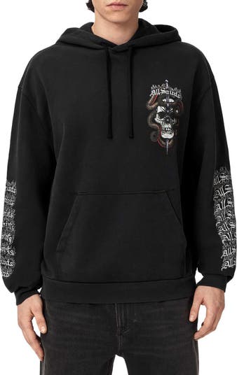 A bold logo marks the front, sleeves and back of this hoodie cut for a relaxed, enveloping fit from hearty, warm cotton fleece.