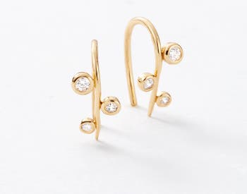 The Aralia Fields Earrings capture the feeling of wildflowers emerging through open fields. Three white topaz stones float along a slender gold wire, adding just a hint of shimmer to their airy elegance.