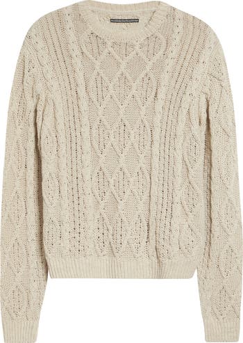 Aran Cable Knit Cotton & Linen Sweater