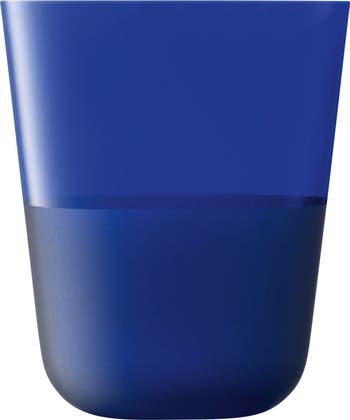 Serve beverages in style in these rounded, stackable glass tumblers that combine translucent and matte finishes for an appealing mix of textures.