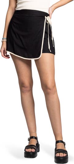 White contrast trim brings sporty appeal to this lightweight, linen-enriched skort that offers versatile wear for casual and more active days.