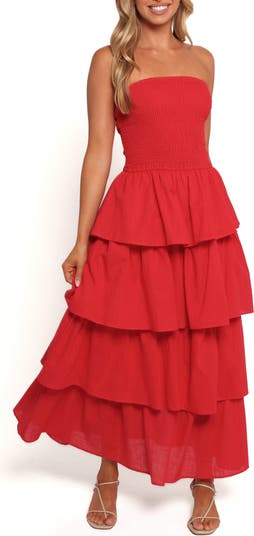 Swish and sway from day to night in this charming tiered sundress cut from breathable cotton in an alluring shoulder-baring silhouette.