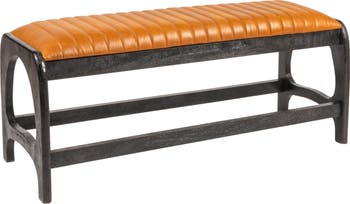 This Mango Wood Arch Bench features a combed black finish and a leather seat with channel stitching, making it a stylish and functional addition to your home. Perfect for entryways, dining rooms, or at the foot of your bed.
