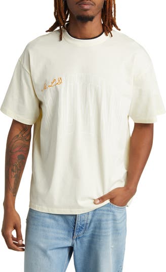 Embroidered lettering sits at the front of this all-cotton T-shirt.