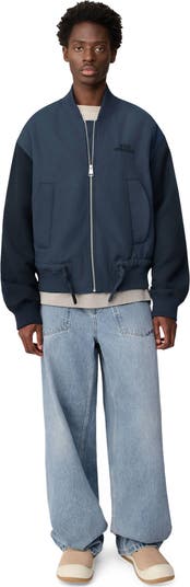 The Archer Bomber Jacket is designed with a regular fit and light padding through the body and sleeves for added warmth. It features a front zip closure, ribbed cuffs, hem, and collar, plus side pockets with press snap closures. Finished with a seasonal chest embroidery, color-blocked sleeves, and a branded zip puller. The model is 185 cm / 6'1 ft and wears a size M.