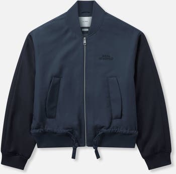 The Archer Bomber Jacket is designed with a regular fit and light padding through the body and sleeves for added warmth. It features a front zip closure, ribbed cuffs, hem, and collar, plus side pockets with press snap closures. Finished with a seasonal chest embroidery, color-blocked sleeves, and a branded zip puller. The model is 185 cm / 6'1 ft and wears a size M.