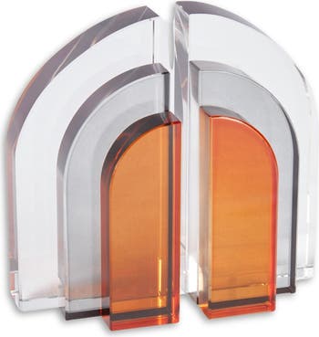 Create a statement bookshelf with the sleek, arching shape of these bookends that keep your favorite volumes neatly and securely ordered between their fine, weighty crystal.